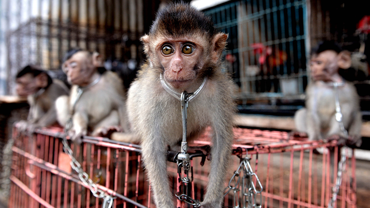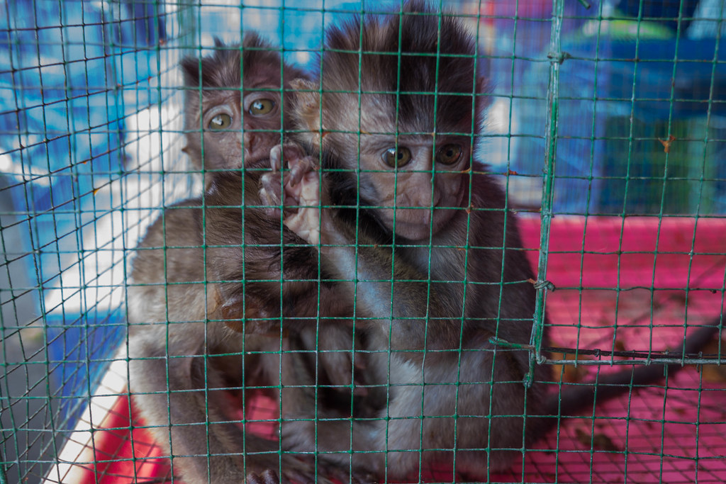 Baby macaque monkeys for sale at Denpasar Bird Market
